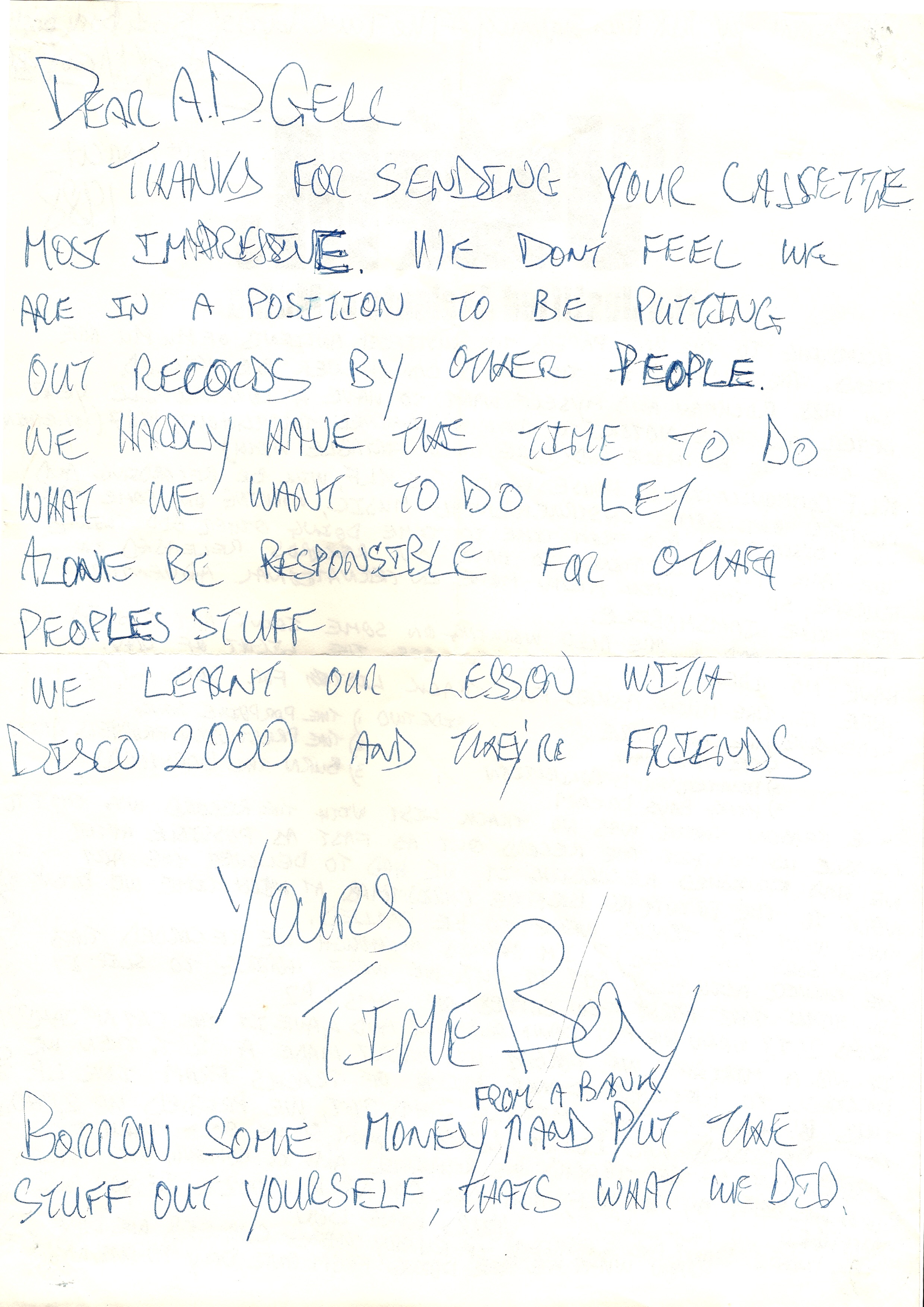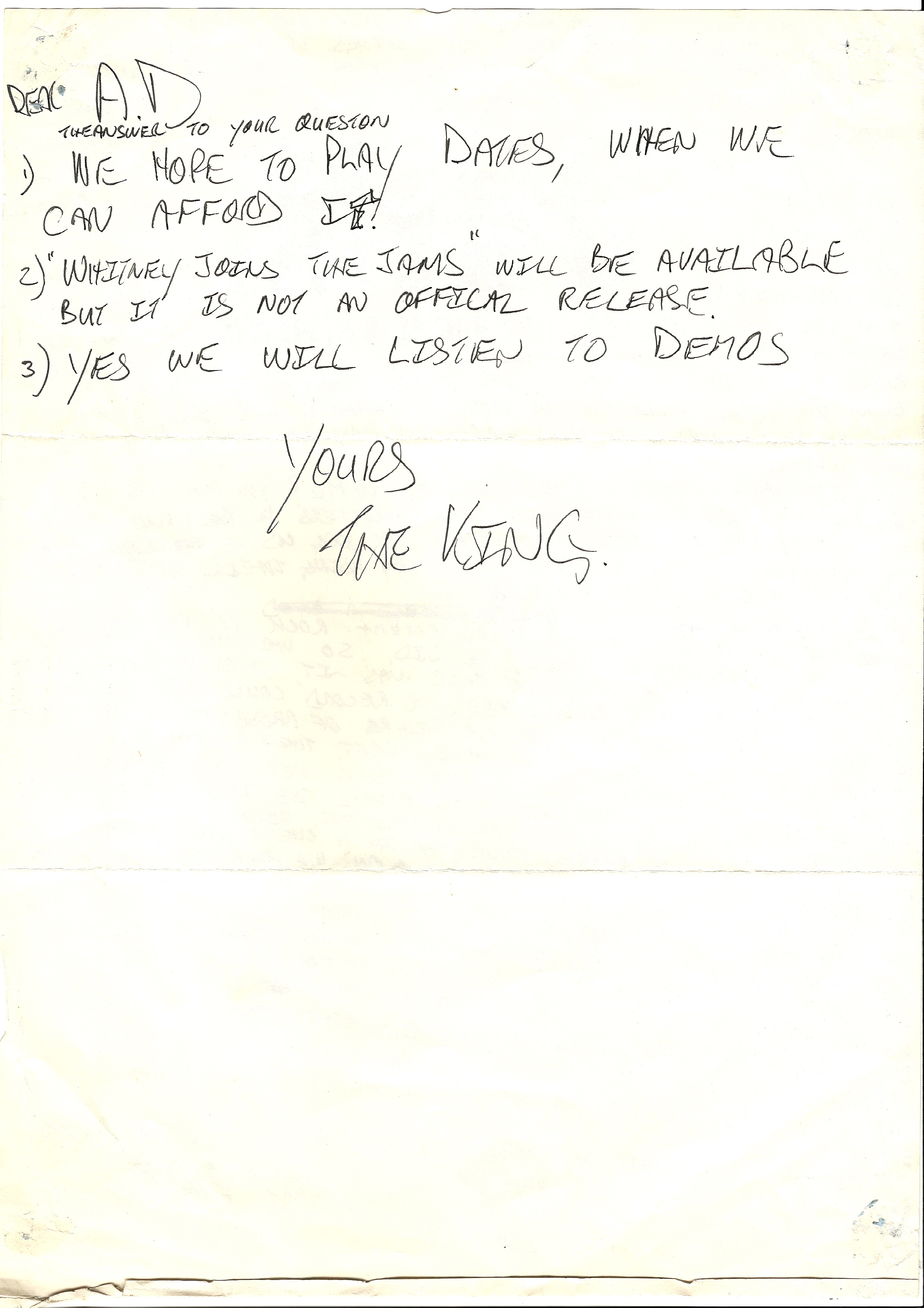 Thirty years on, I got to meet The King/Timeboy in the flesh and he was just as friendly and encouraging as he was way when he wrote these notes.