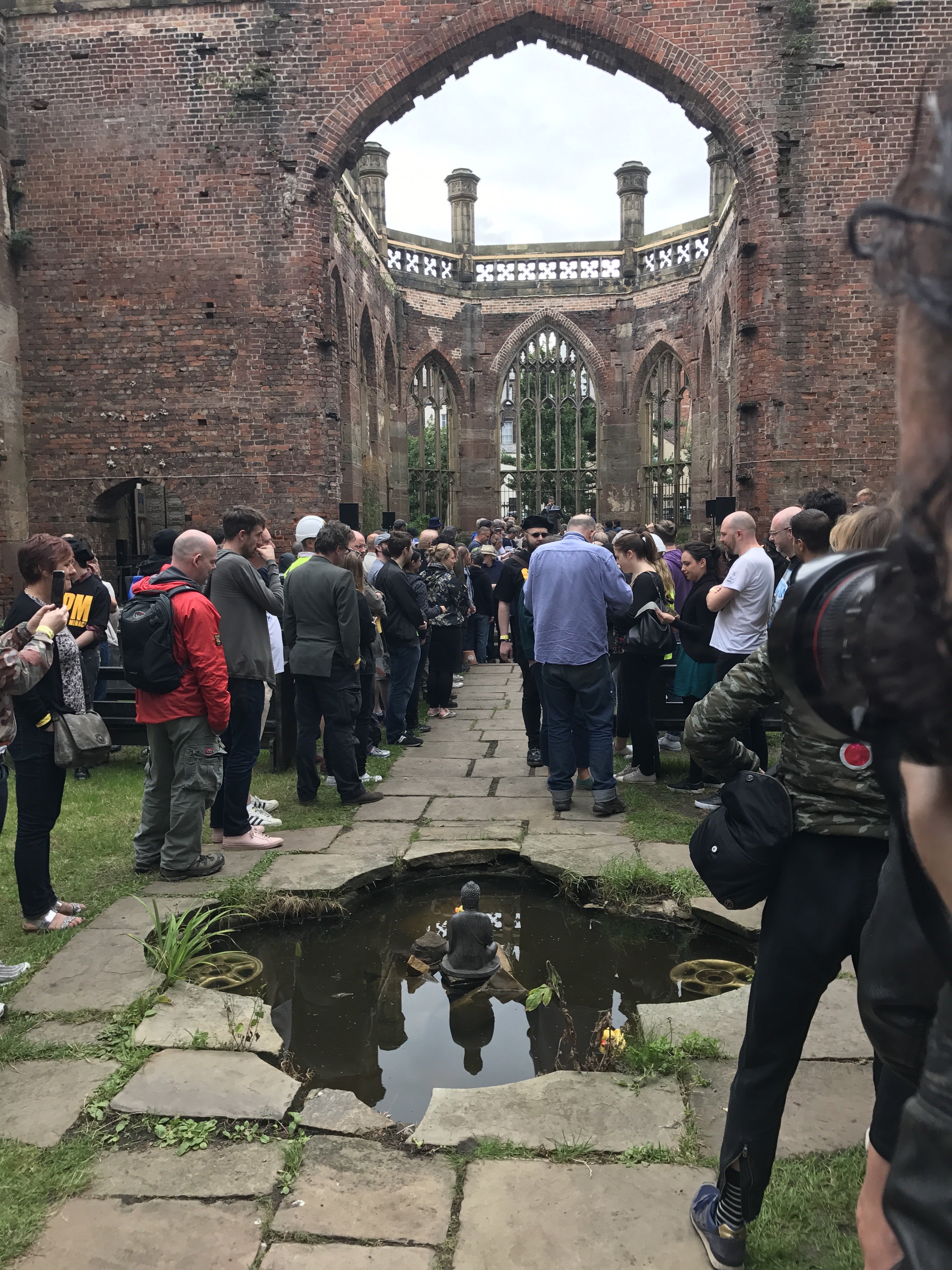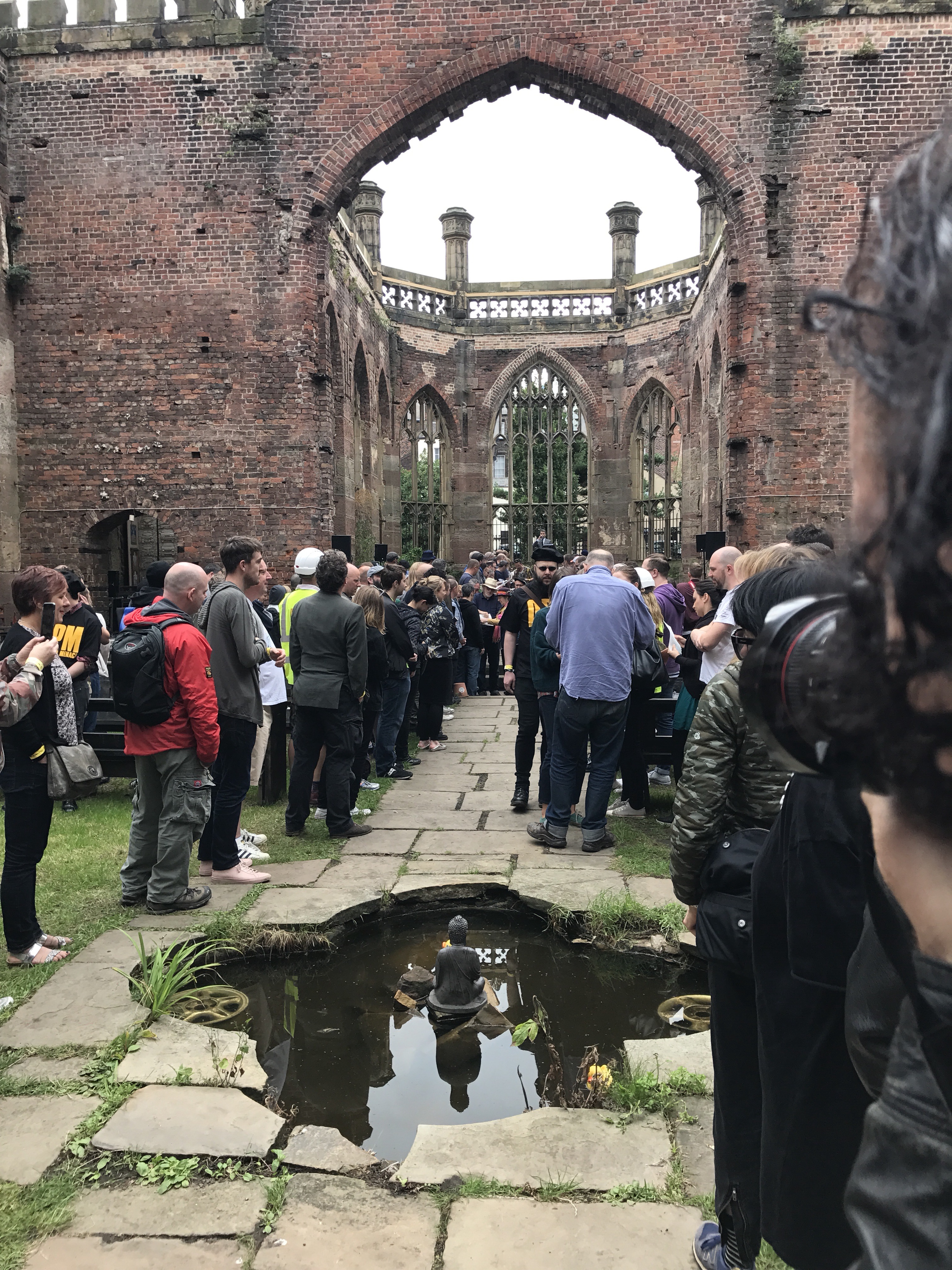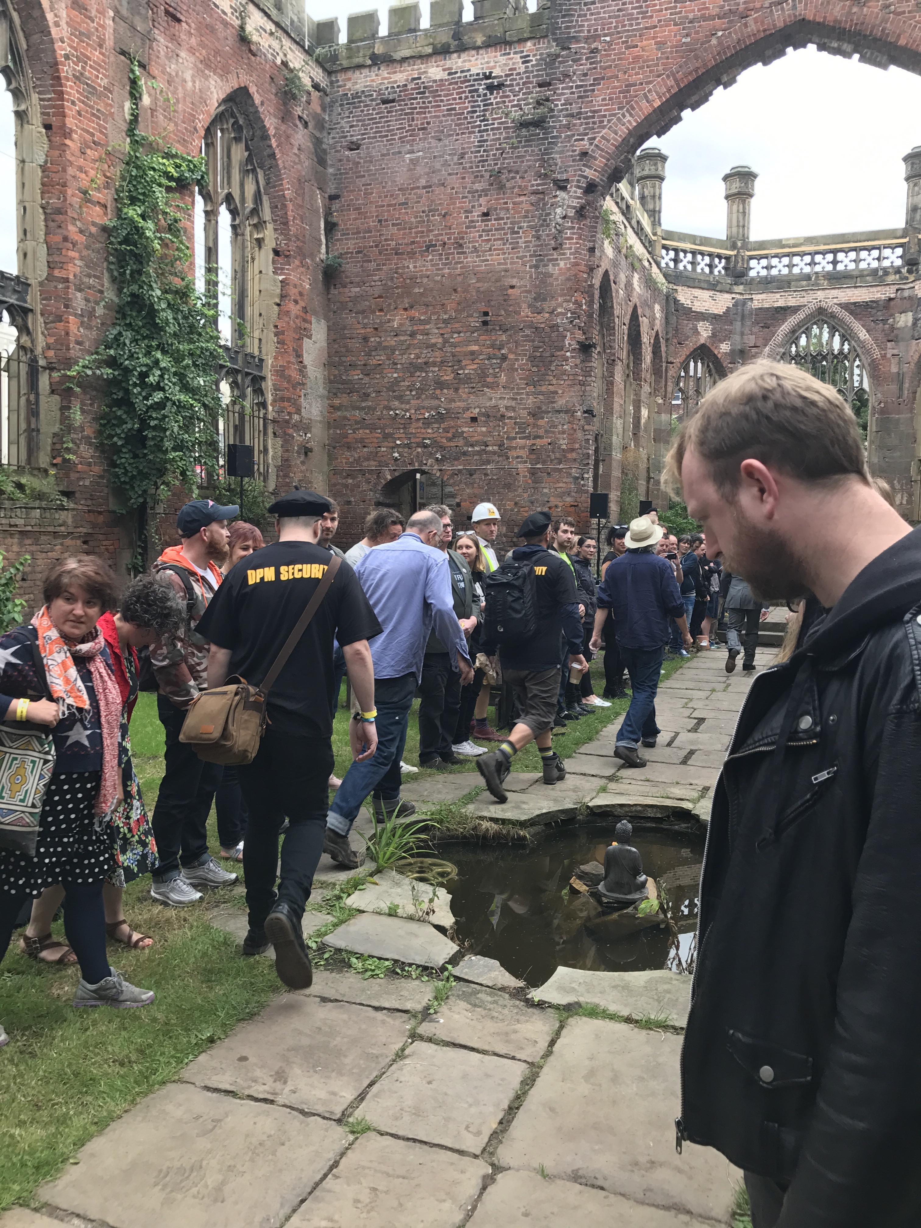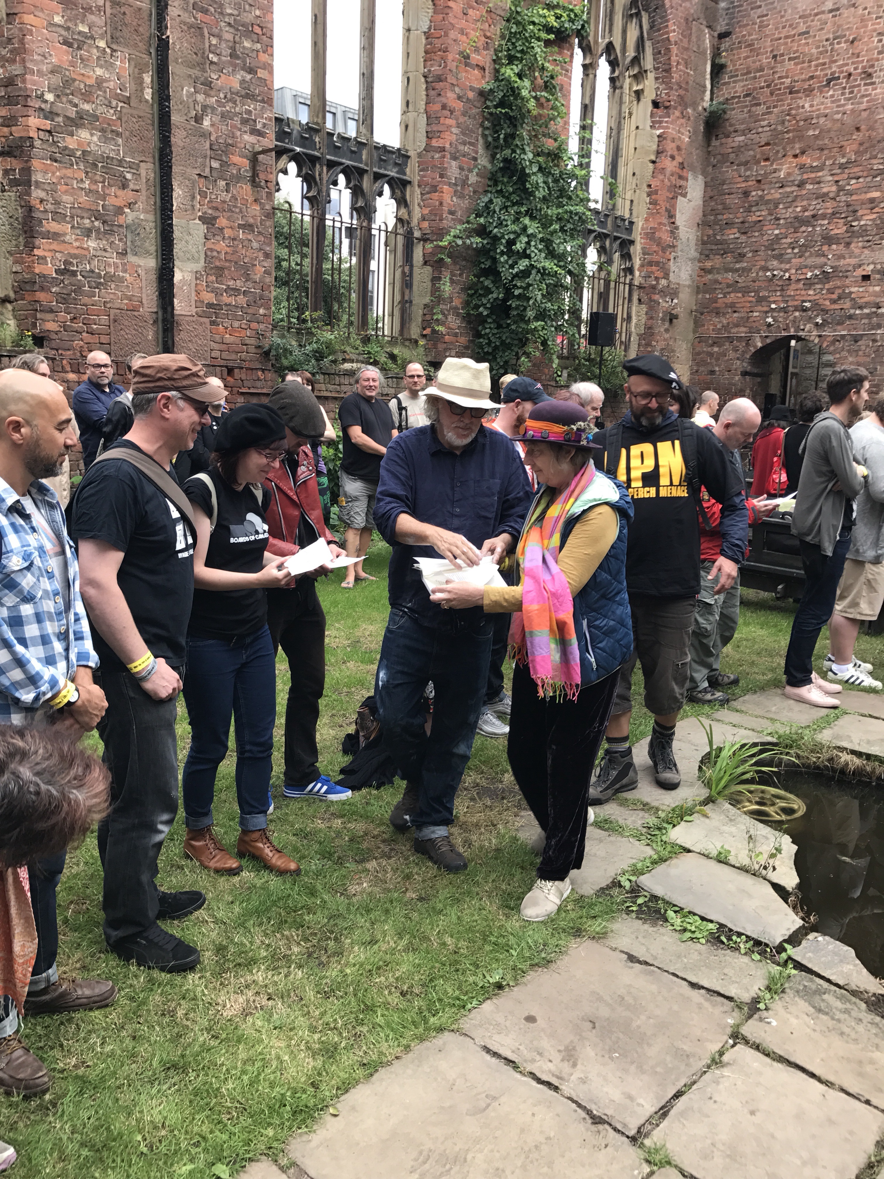 As I left The Bombed-Out Church for the afternoon, it was still a hive of activity with people drawing, cutting, singing, dancing, while a few dozen sat in deck chairs listening to Oliver’s readings.
