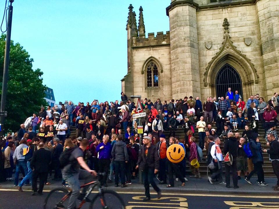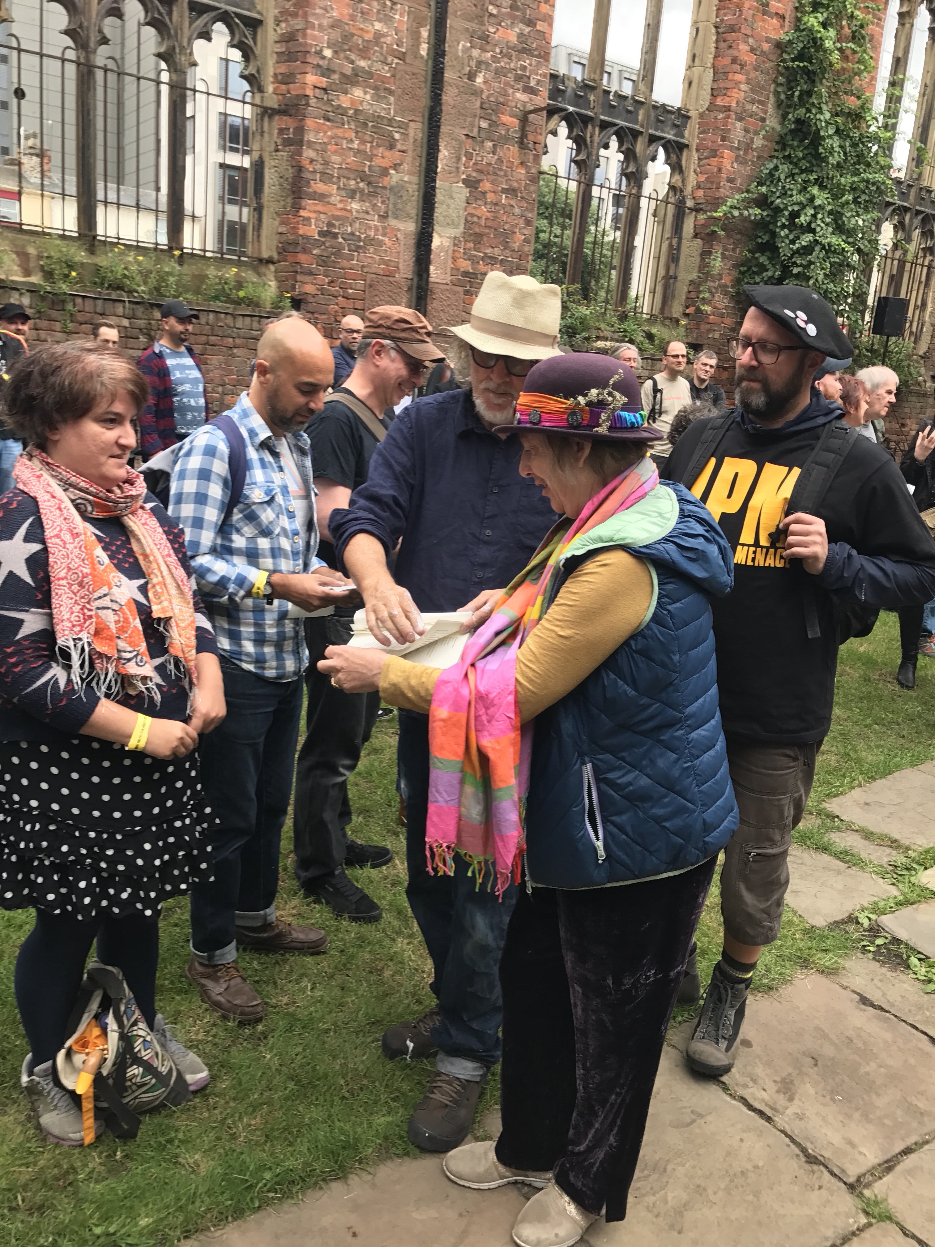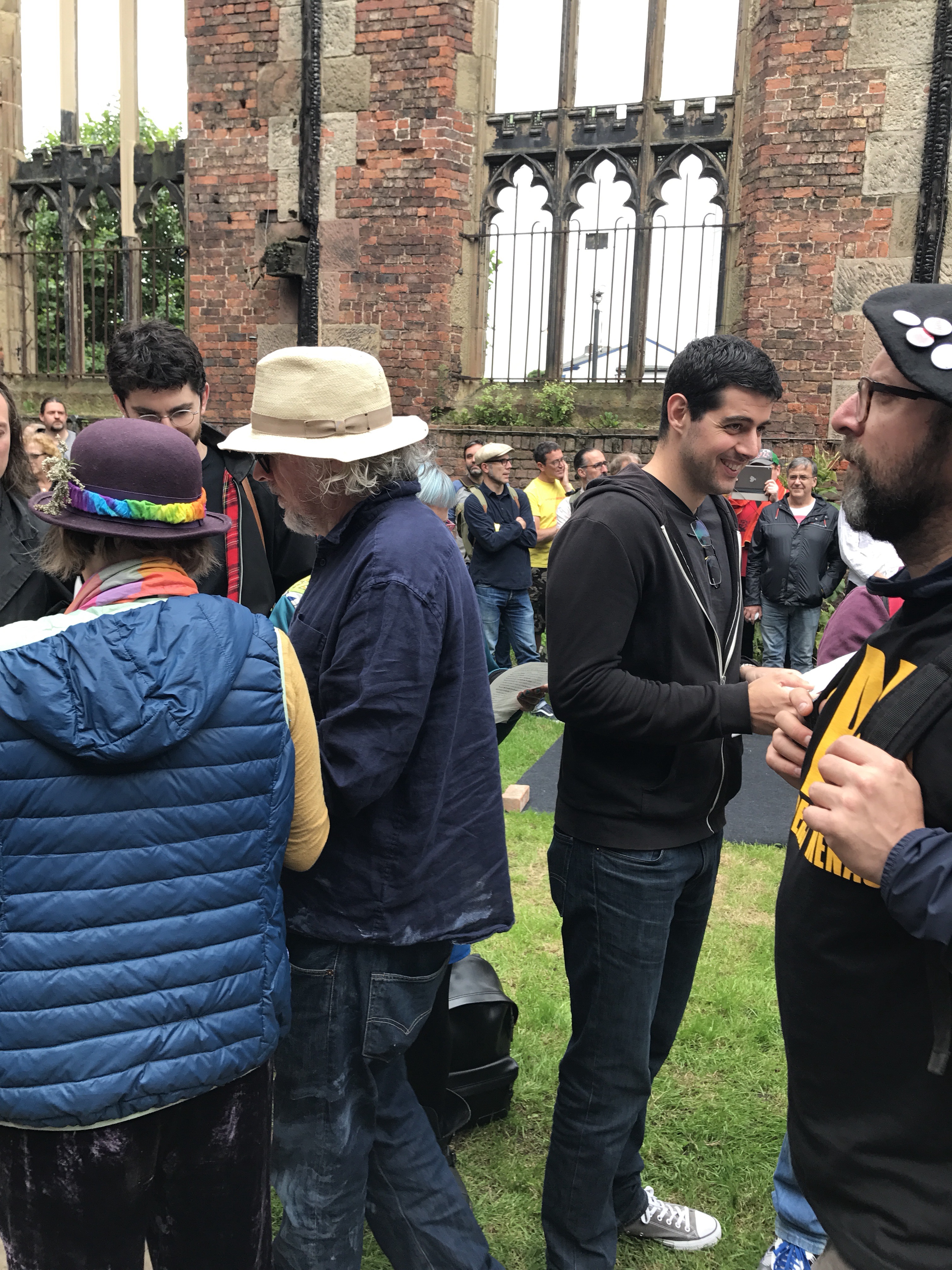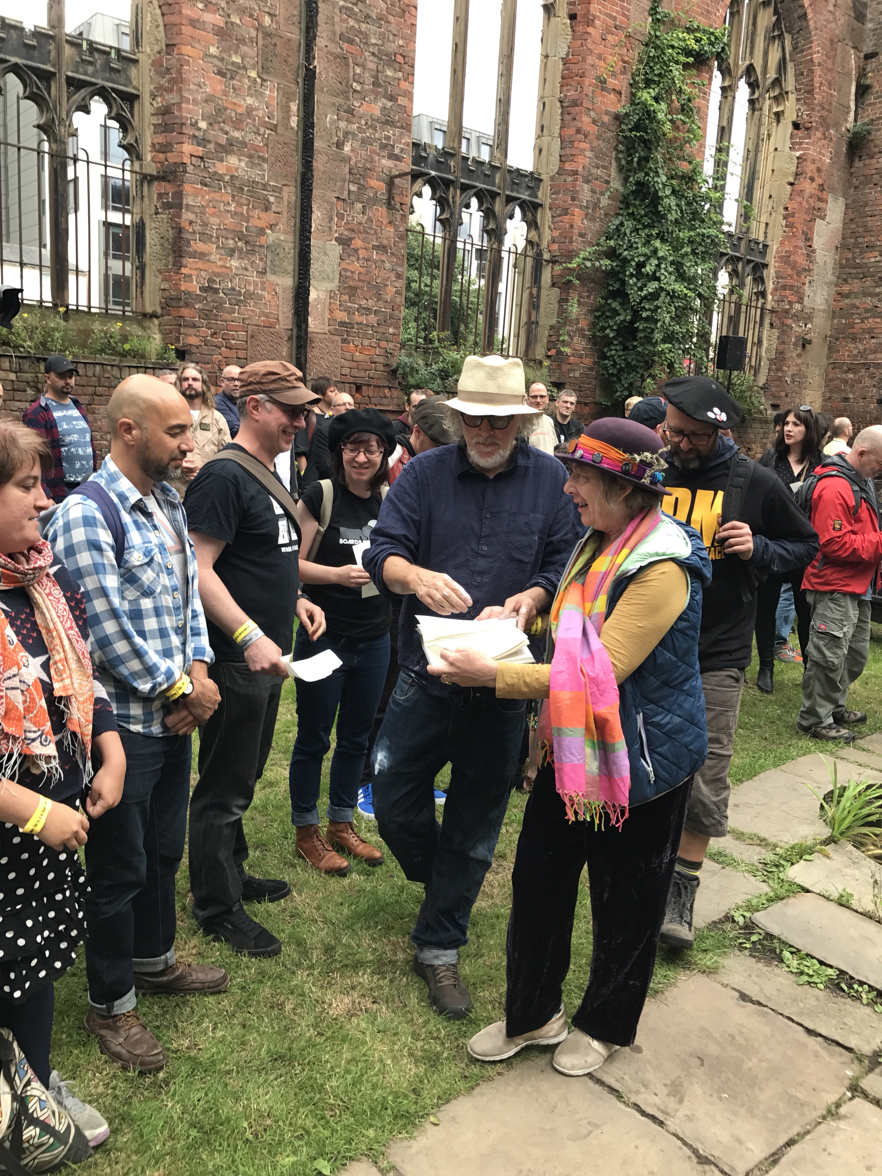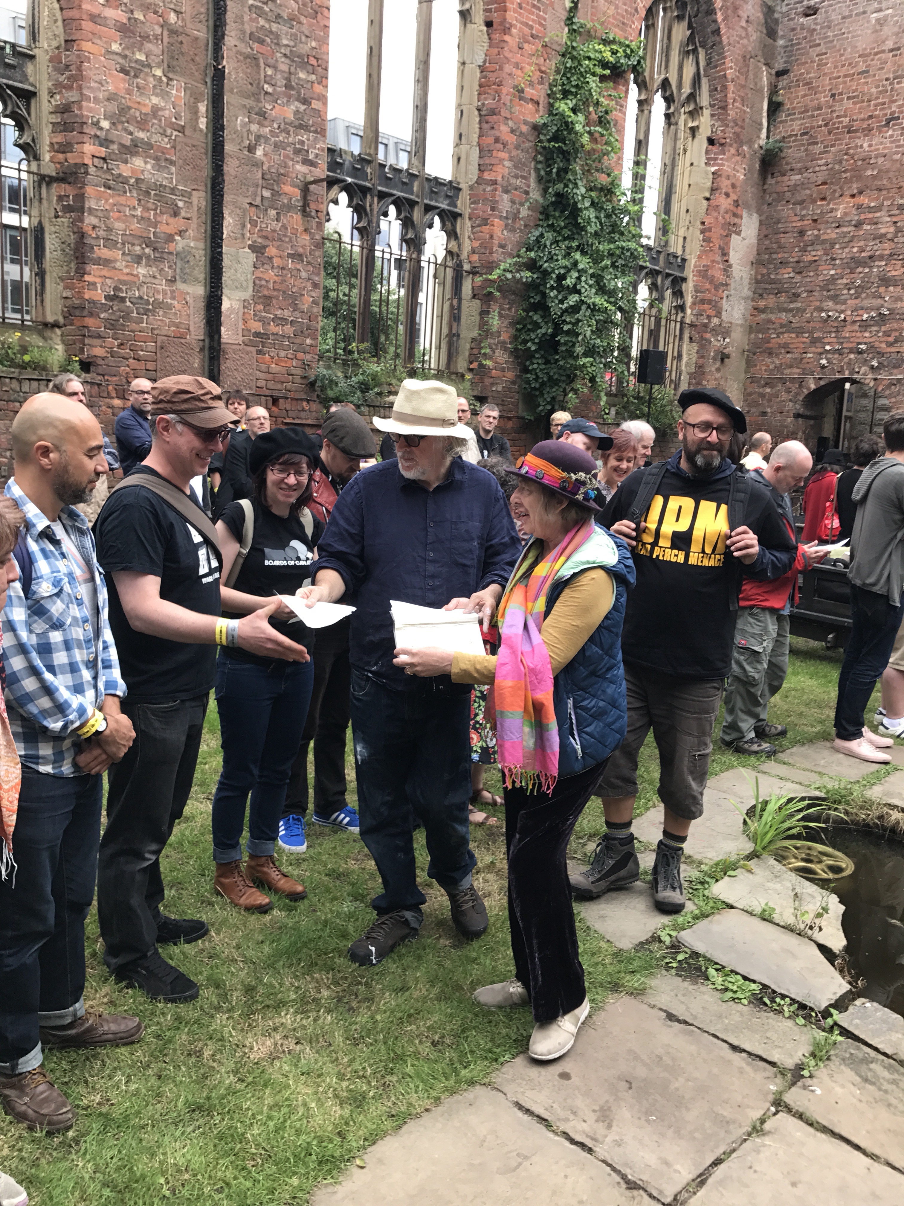 As I left The Bombed-Out Church for the afternoon, it was still a hive of activity with people drawing, cutting, singing, dancing, while a few dozen sat in deck chairs listening to Oliver’s readings.