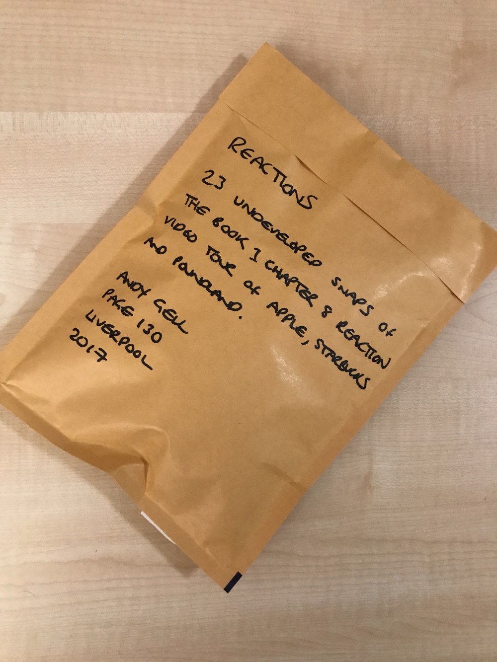 These showings were recorded on a disposable camera and sealed into this Jiffy bag.