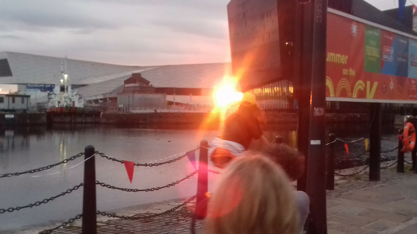 As the Liver Building appeared ahead of us, my mind wandered to earlier in the day when I’d visited the Tate Gallery. Maybe plan was to pull the van into the gallery, declaring ‘THIS is our art’. Or maybe the van was going into the Albert Dock. Thankfully, none of these were in the plan and we carried on through past the Liver Building where the sun was beginning to set magnificently in the West.