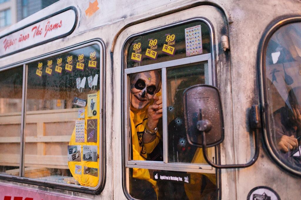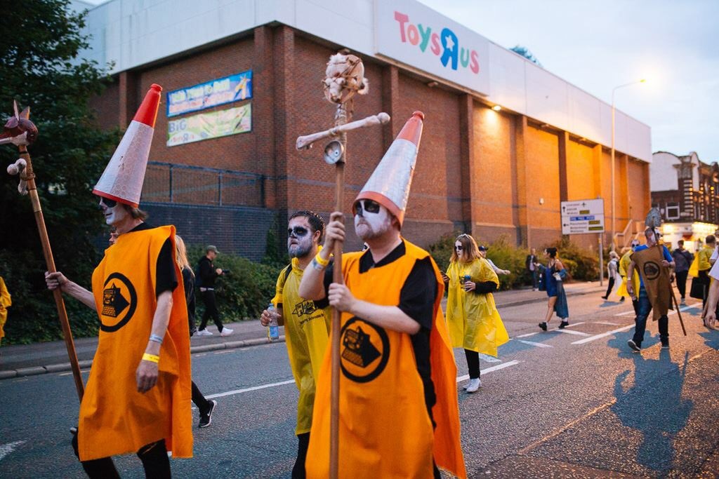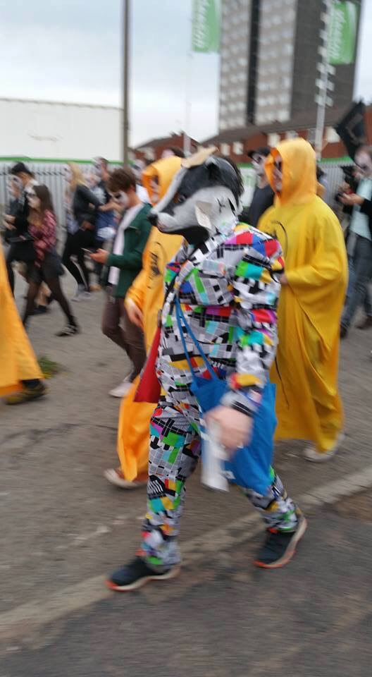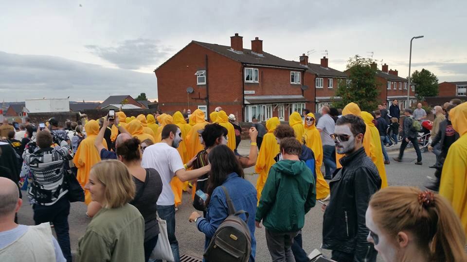 As we approached the city centre a car pulled up, opened up it’s boot and those of us not in costume got our own JAMs Poncho. Boy, we looked spectacular in yellow.