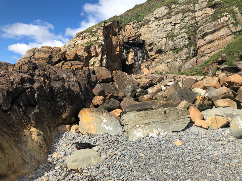 Next was St Ninian’s cave. Ninian of Whithorn may well have brought Christianity to Scotland, adding some pretty heavy handed symbolism to its use in The Wicker Man. The path to the beach is not without its obstacles, mostly mud based, but the reward makes it all worthwhile.
