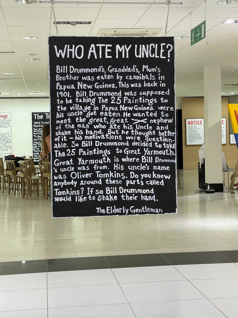 WHO ATE MY UNCLE? was the name given to the exhibition of THE 25 PAINTINGS and a pandemic-induced rerouting of THE WORLD TOUR. Across the month we’re various events and I chose the premiere of WHITE MALE GAZE as the occasion to visit.