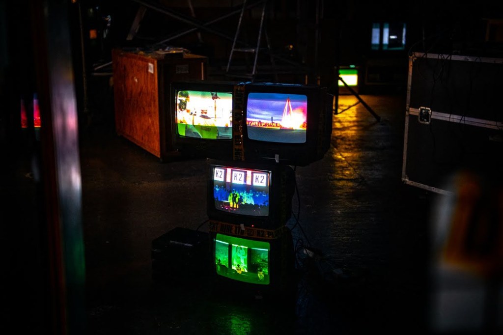 Then gradually more stacks of TVs were revealed, all showing unseen, professionally shot footage from WTTDA. The DJ set was a blend of KLF tracks and variations on a theme. There were many highlights in the new footage, but the best was a complete multi-camera performance of JARVIS JOINS THE JAMs. A future XMAS number one…?