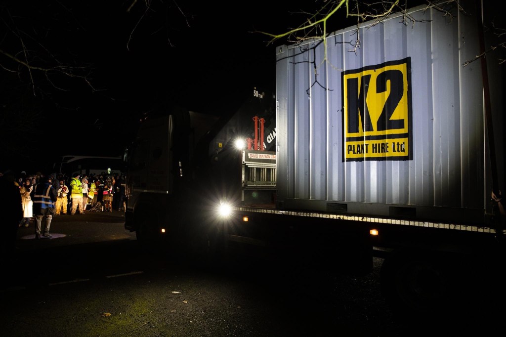 A stroll through Princes/Buxton Park led to our first encounter with Hope Street Harmonies, who serenaded us with a rendition of When Doves Cry. Then after making some school children divert their route home, we linked up with the prophetically named Temple Road. After plans were dropped for an event at The Cat & Fiddle pub in the hills above Buxton, I’d scoured Google Maps trying to second guess The JAMs’ choice for an alternate location. It didn’t take long to find Solomon’s Temple, a Victorian folly, built for the purposes of storing Bricks and providing an oratory platform for any passing undertakers. These events are always attended by many fantastic photographers and film makers, whose generous sharing of the fruits of their labours always facilitates a gentle come down in the days following a November 23rd. As I walked along Temple Road, Nick confirmed my suspicions. He had been testing out his drone and had inadvertently flown into the airspace about Solomon’s Temple, where he could clearly see, K2 Plant Hire’s last minute preparations taking place.