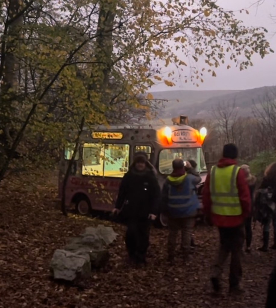 As the 223 participants were either taking a breather, sipping some Jura or having a pre-ritual toilet break, the car park to Poole’s Cavern was suddenly serenaded by the now all too familiar chimes of a Ukrainian Ice Kream Van that had suddenly apparated half up the neighbouring hillside of Grin Low. With no roads, lifts or cranes in sight, I think it’s safer to assume that it was simply magicked up there.
