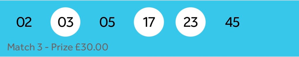 I win on the lottery from time to time, through my regular deployment of The Bill numbers. Enough times each year to pretty much break even.